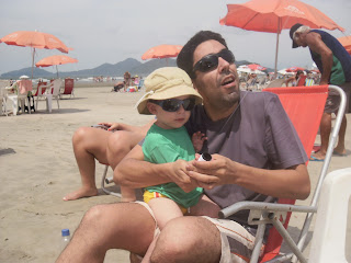 Aliás, meninas, a dica é juntar tudo quanto é brinquedinho de plástico lavável e carregar junto pra praia. Filhote construiu castelos, casas, ruas pros carrinhos, cabanas pros bonequinhos. Imaginação sem descanço durante as férias.